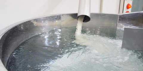 大きなタンクでたっぷりと水を吸い込ませ、ふっくらとおいしいおこわ、ごはんを調理する準備をします。