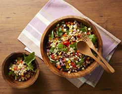 ぷちっともち玄米を使うと、炊飯して玄米ご飯としてだけでなく10分間ゆでてお好みの食材・ドレッシングと和えるだけで、お米の栄養をまるごと摂取できるグレインズサラダを簡単に作ることができます。