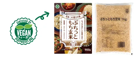 添加物などの使用はなく100%お米が原料ですが、加工工程においても動物の使用がないこと等も確認されヴィーガン認証を取得することができました。ヴィーガンマークを記載することで、サスティナブルな食の選択でもあるヴィーガンを発信し、求めている方にも届きやすくしています。
