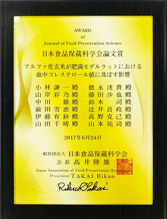 『アルファ化玄米が肥満モデルラットにおける血中コレステロール値に及ぼす影響』