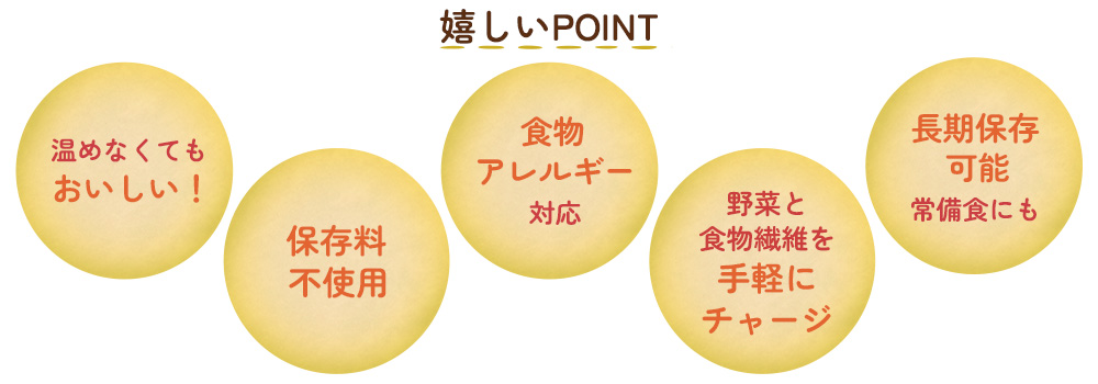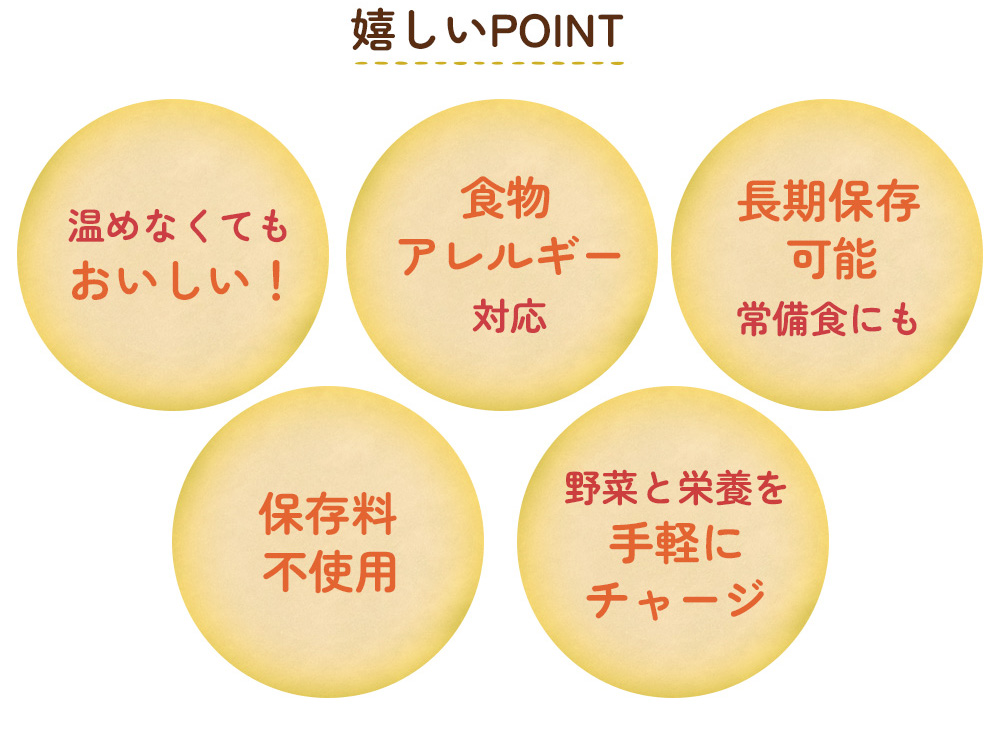 防災用の備蓄はもちろん、アウトドア、旅行、食物アレルギーの方の外出時、外出ができない時など、様々なシーンで役立ちます!