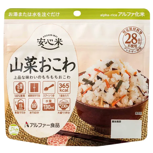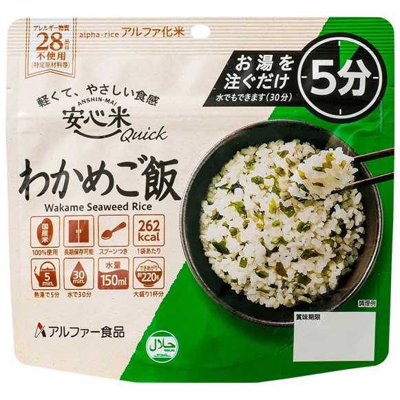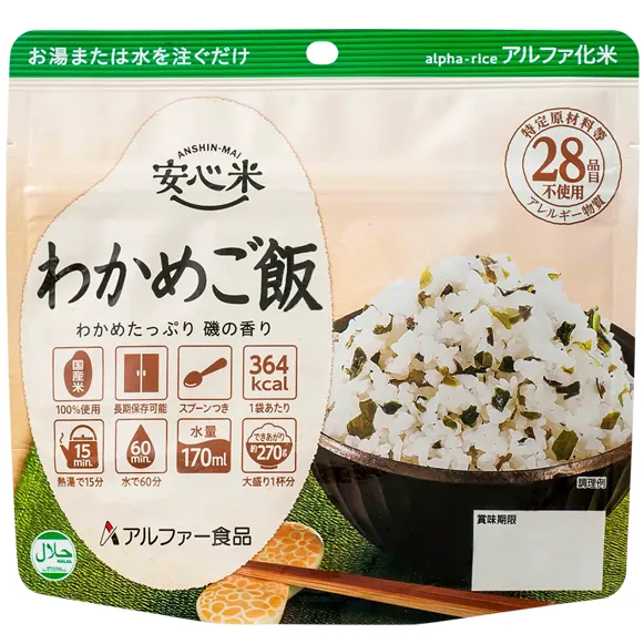 台風で停電が続き、ご飯を炊くことができず困りましたが、毎日使わせてもらいました。主人は、パックにお湯を入れたのをそのまま持って仕事に行きました。避難所では、アルファー食品のわかめご飯をもらいました。とてもおいしかったです!一歳の娘もわかめご飯をたくさん食べていました。本当に助かりました。ありがとうございました。