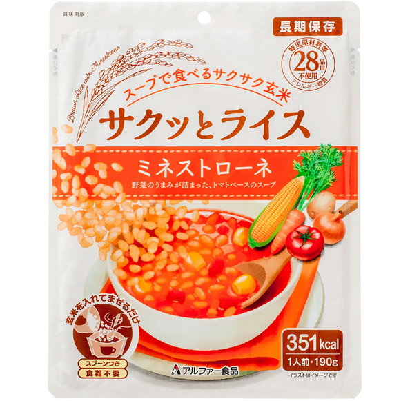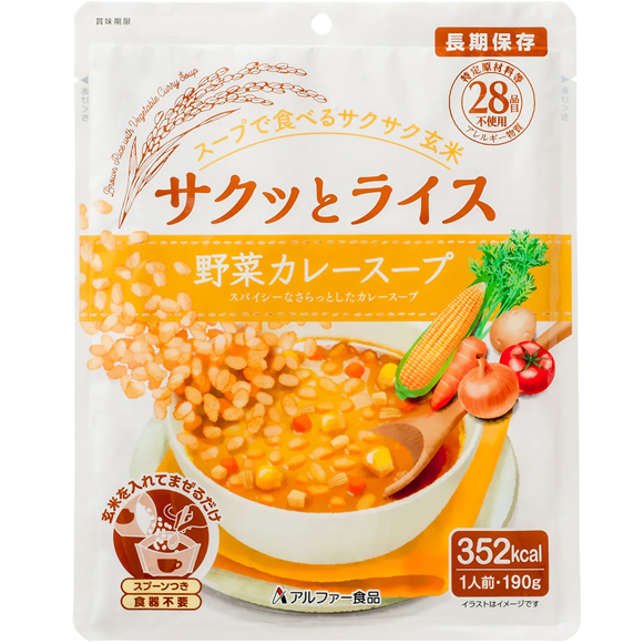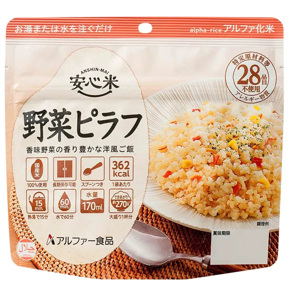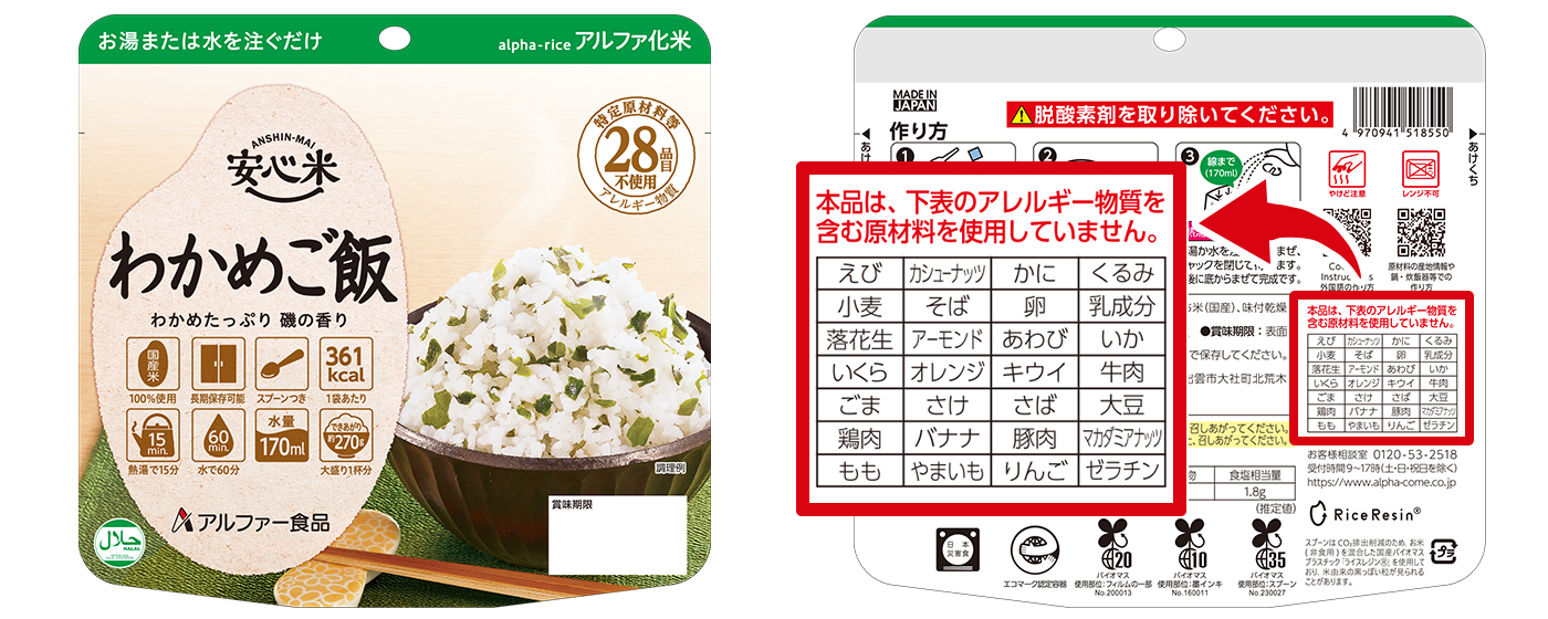 特定原材料等(アレルギー物質)28品目の食物アレルギーに配慮した長期保存食です。