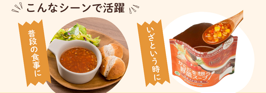 常温で長期保存が可能で、水や調理の手間がかからないので、いつでも野菜を摂ることができます。